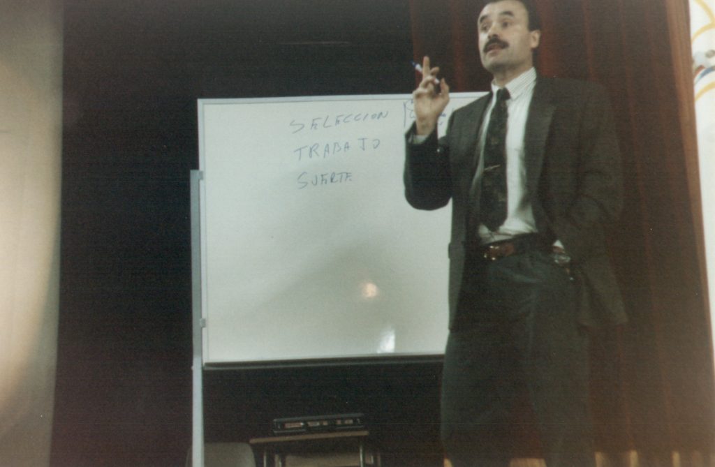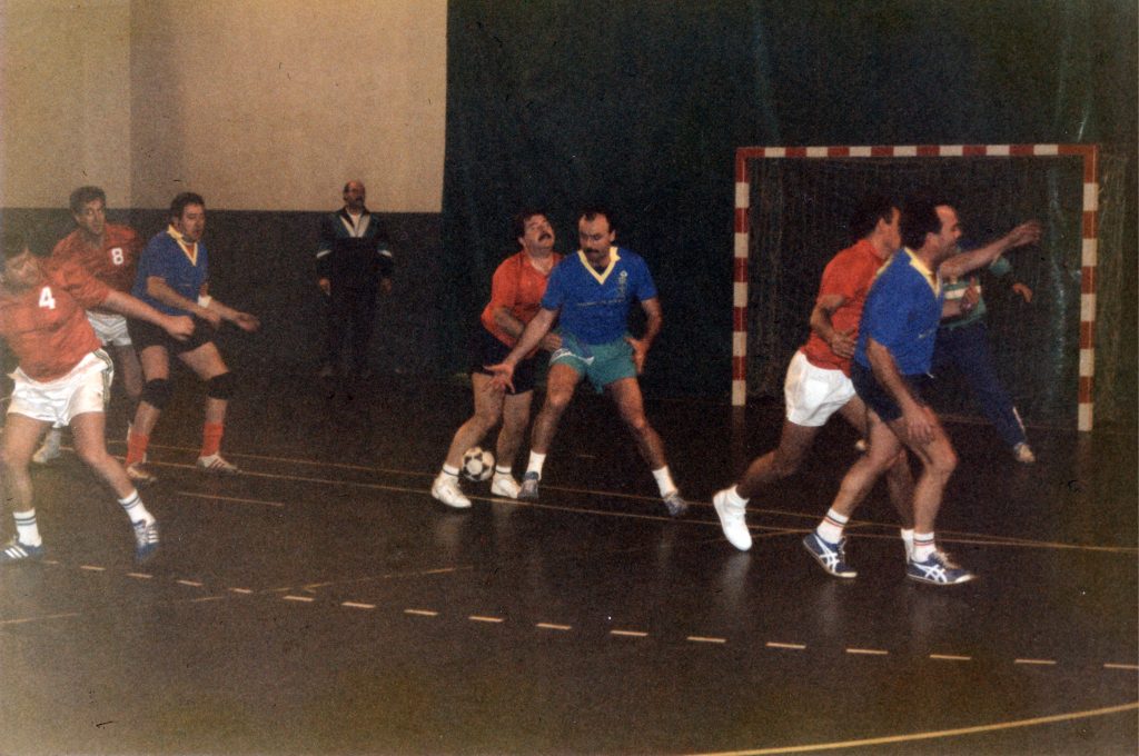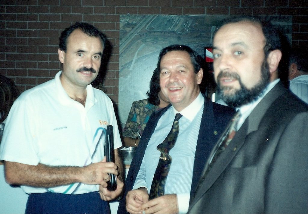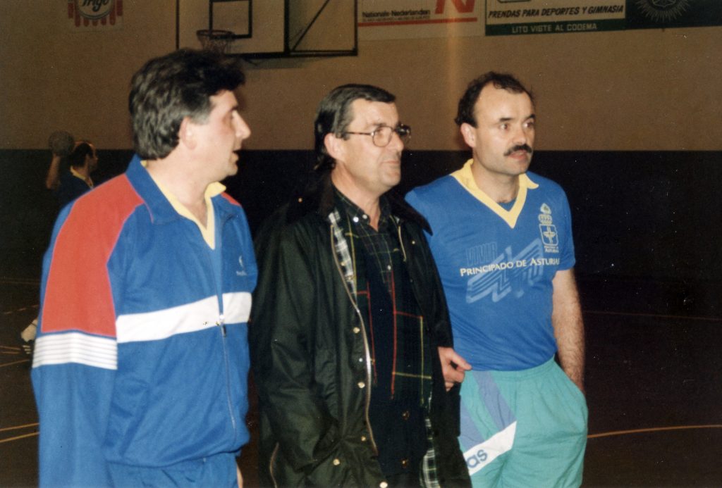 Visita a Asturias como seleccionador nacional, con Juan Arribas (presidente de la Federación asturiana) y Jesús López Ricondo presidente de la Real Federación Española de Balonmano (RFEBM)