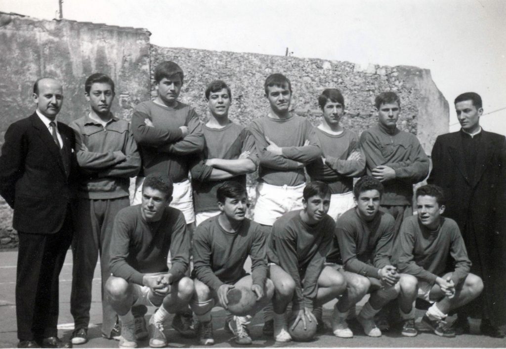 Vicente Moral (At. Madrid), Cuesta (At. Madrid), Padre Corral (Codema, origen del resto de fotografiados), Villamarín (Barcelona). Agachado; Javier Meana (At. Madrid). (pendiente fechar)